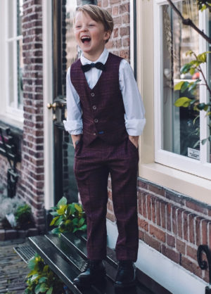 Cavani Boys Carly Tweed Burgundy Check 3 Piece Suit