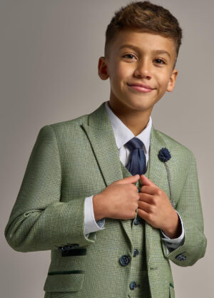 Cavani Boys Caridi Sage Green Check 3 Piece Suit