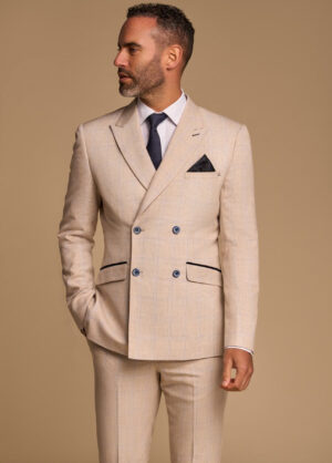 Cavani Double Breasted Contrast Blue & Tan 2 Piece Suit