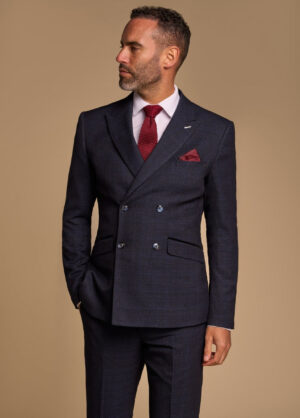 Cavani Double Breasted Contrast Blue & Ecru 2 Piece Suit