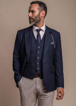 Cavani Albert Tweed 3 Piece Contrast Suit With Navy Chinos
