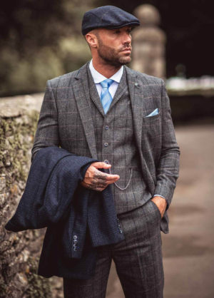 Cavani Albert Grey Tweed Check 3 Piece Wedding Suit Slim Fit