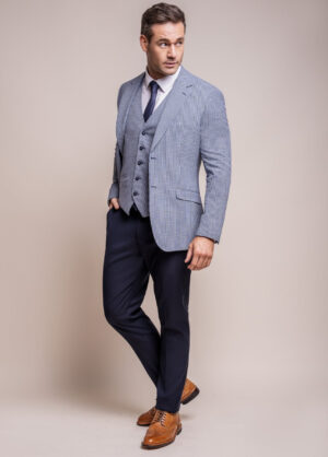 Cavani Baresi Sky Blue Check 3 Piece Suit Contrast Trousers