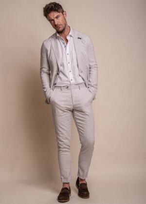 Cavani Alvari Stone Linen 2 Piece Slim Fit Suit
