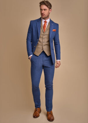 Cavani Angels Blue Tweed Check Slim Fit 3 Piece Suit