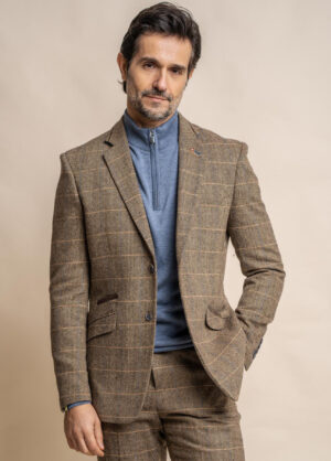 Albert Light Brown Tweed Check Slim Fit 3 Piece Suit