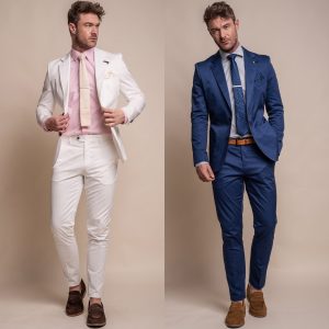 Original price was: £224.95.£160.00Current price is: £160.00.Cavani Mario Blue & Ecru Glazed Cotton 2 Piece Slim Fit Suit
