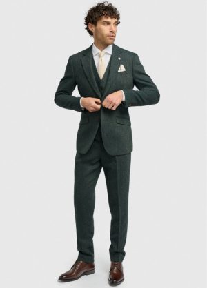 Cavani Herringbone Tweed Olive 3 Piece Slim Fit Wedding Suit