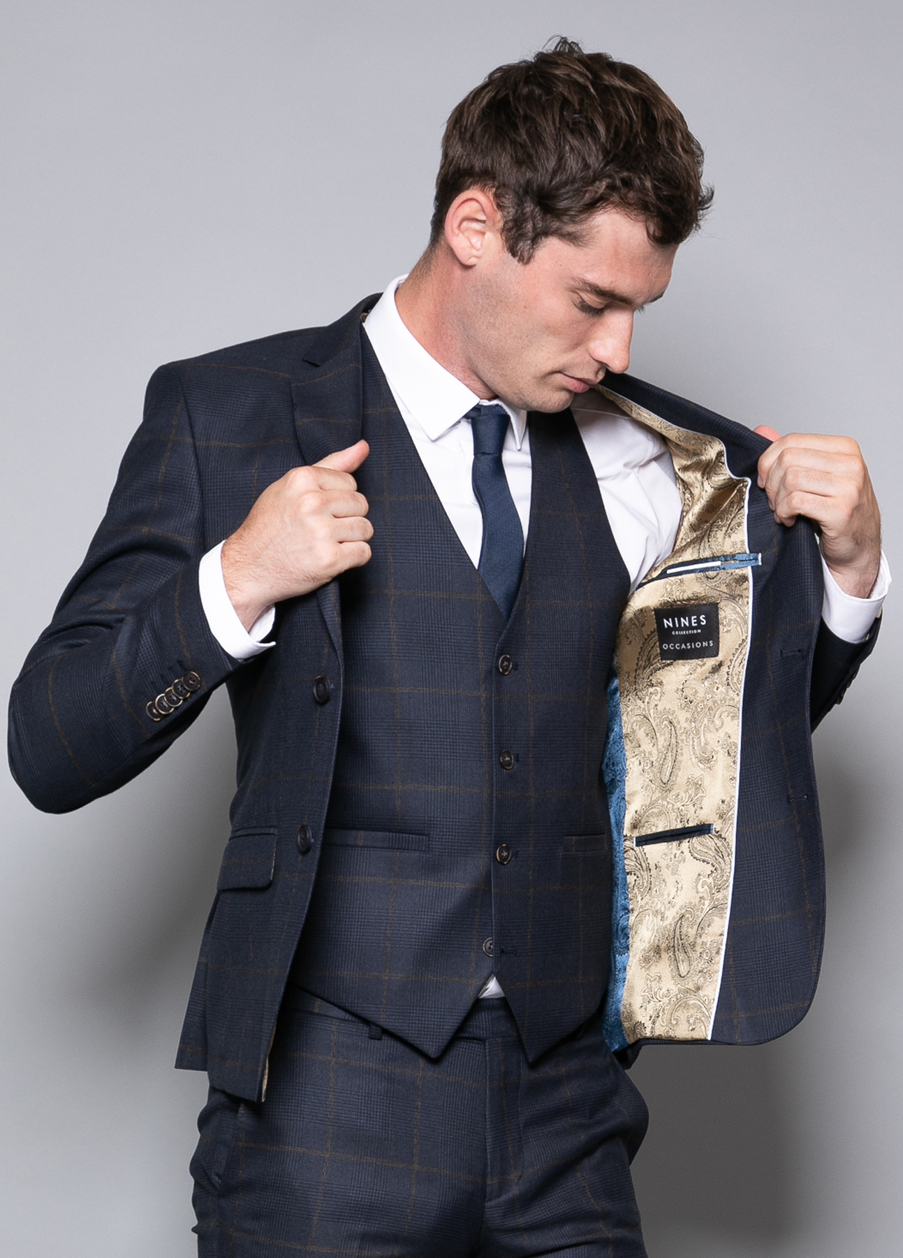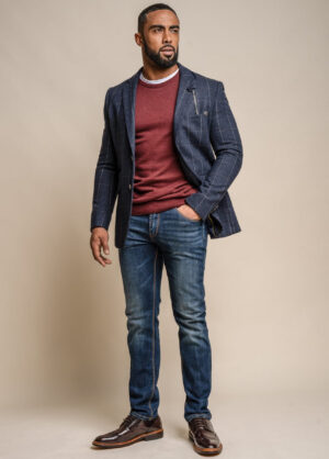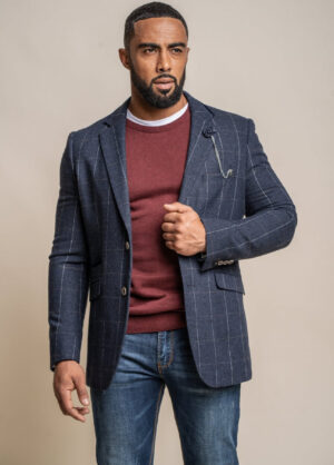Men’s Cavani Navy Blue Check Suit Blazer Slim Fit