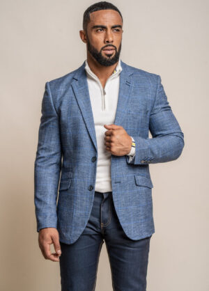 Cavani Cody Blue Tweed Check Slim Fit Blazer