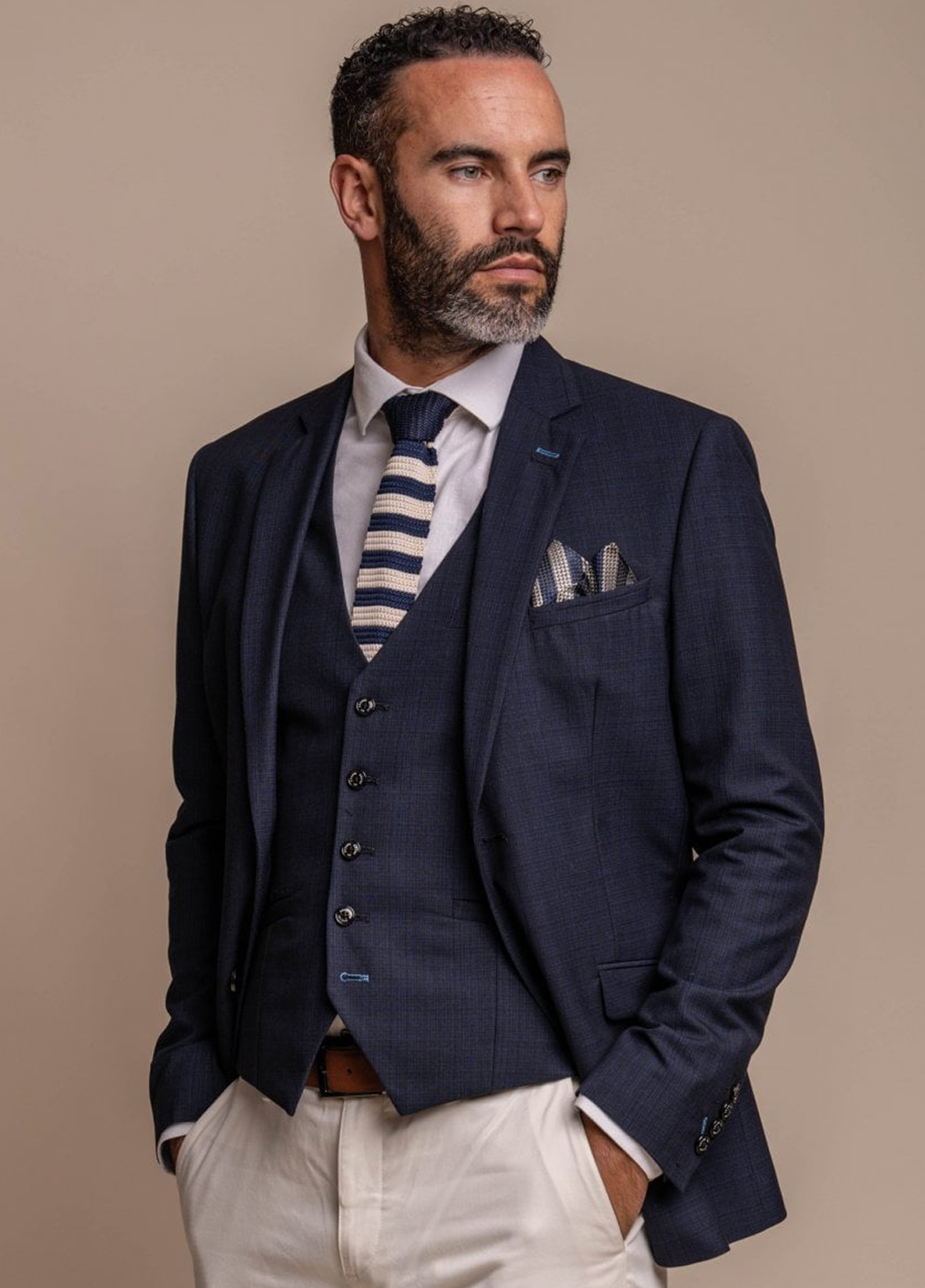 Cavani Double Breasted Contrast Blue & Ecru 2 Piece Suit