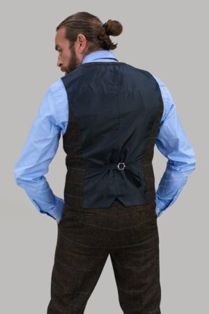 Cavani Tommy Brown Tweed Check Double Breasted Waistcoat