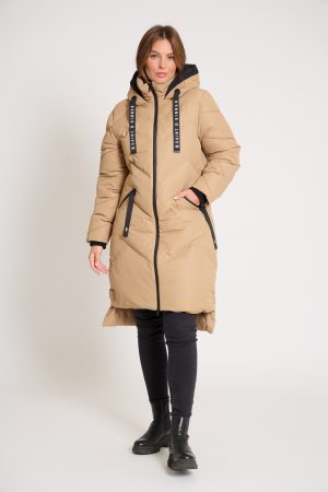 Women’s Long Padded Camel Hooded Winter Coat