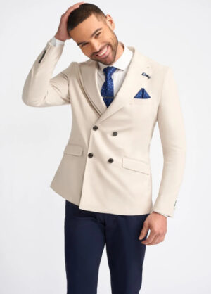 Cavani Romeo Cream Double Breasted Blazer Peaked Lapels