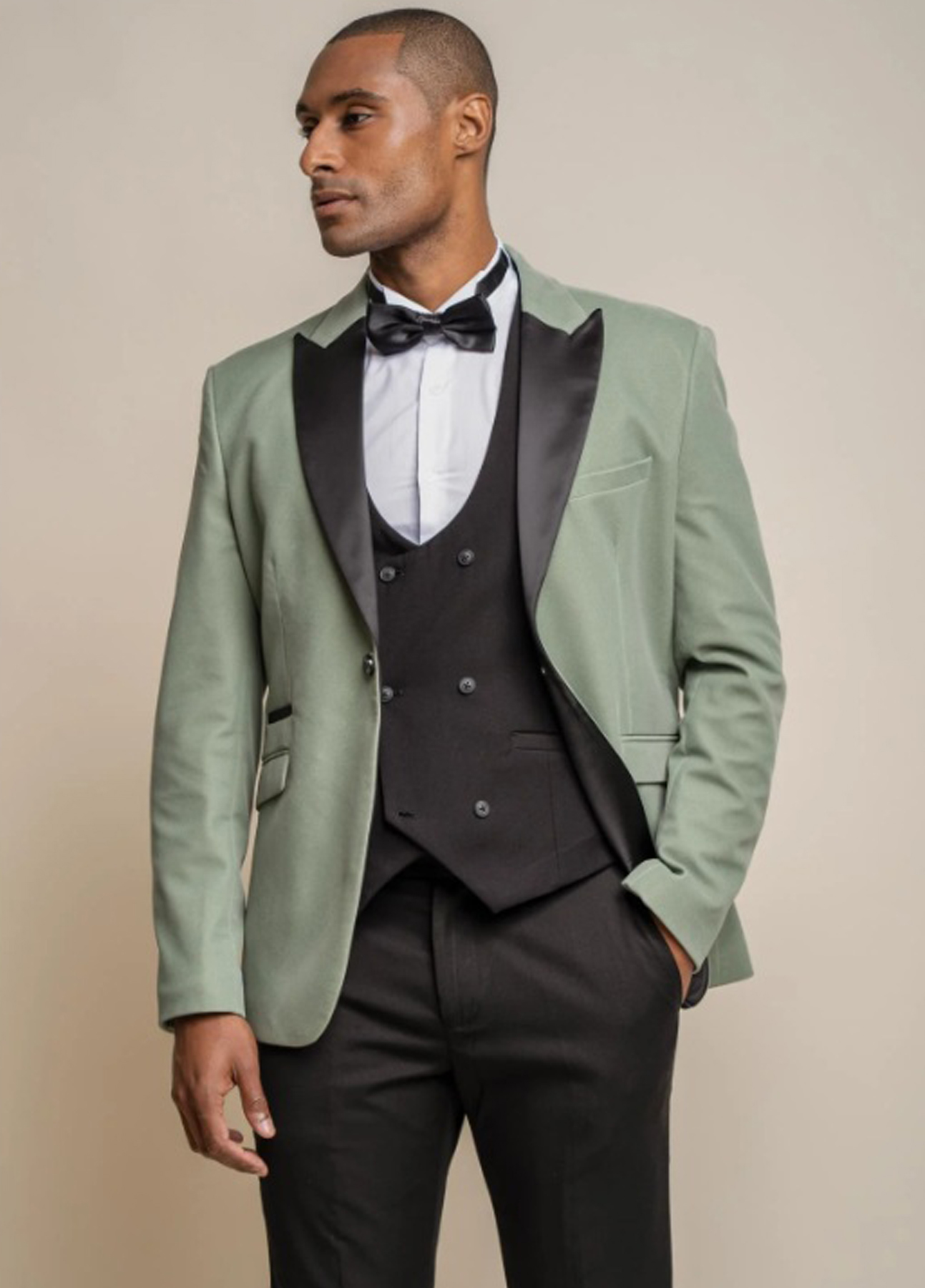 Cavani Sage Green 3 Piece Contrast Suit With Olive Waistcoat