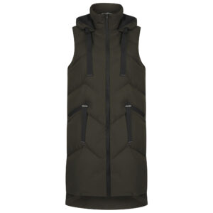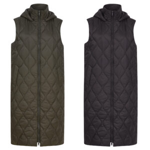Women’s Long Quilted Padded Black & Khaki Hooded Gilet