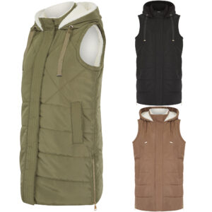 Women’s Long Quilted Bodywarmer Padded Hooded Gilet