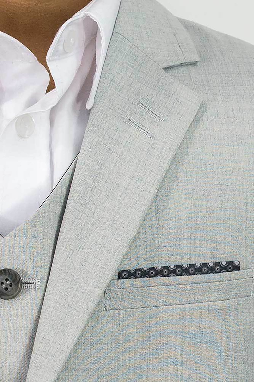 Start the little man’s suit collection with this chic and stylish light grey 3 piece suit from House of Cavani