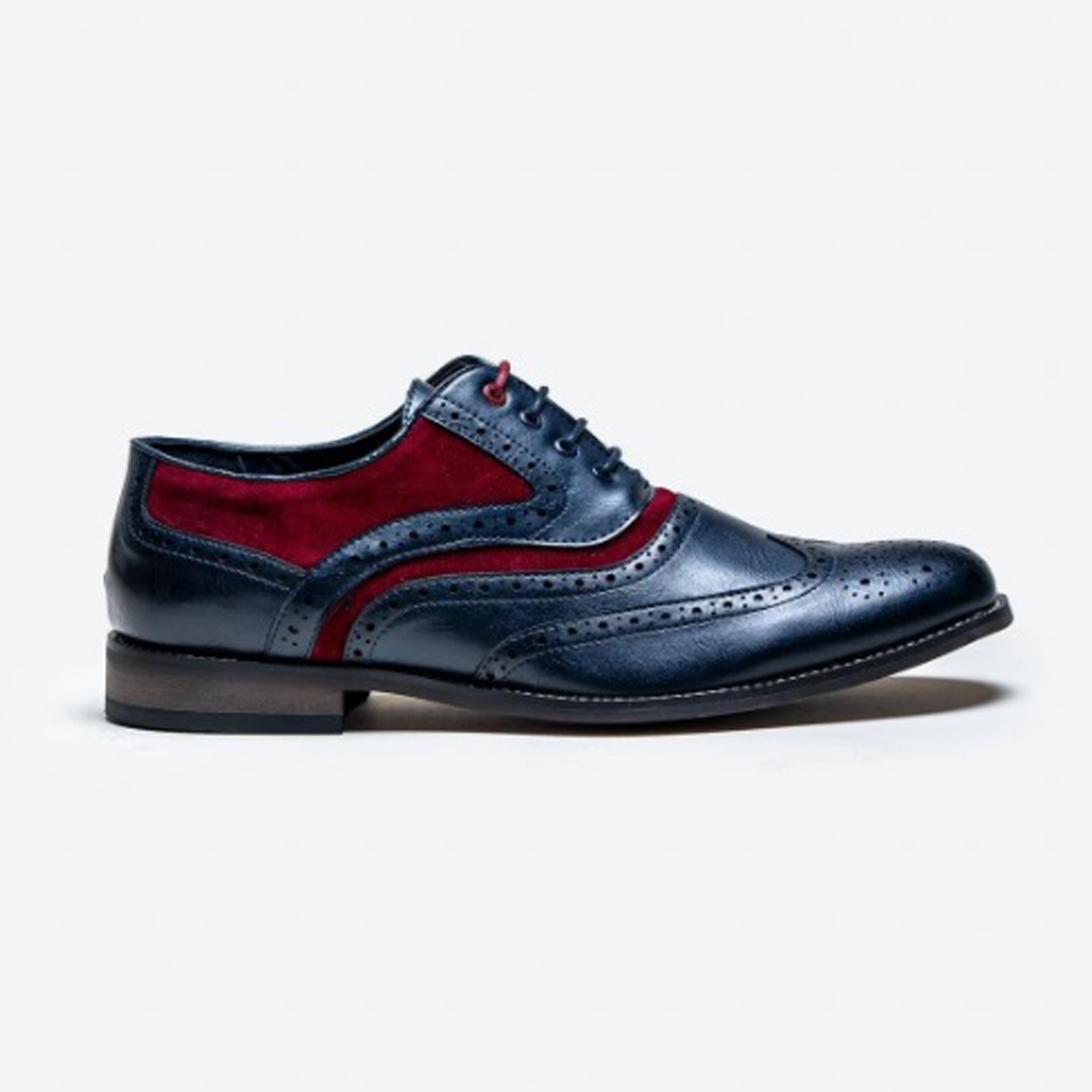 A classic brogue with a contrast suede patch to accentuate a bold style. Can be worn casually with jeans or dressed up paired with a vintage tweed suit.