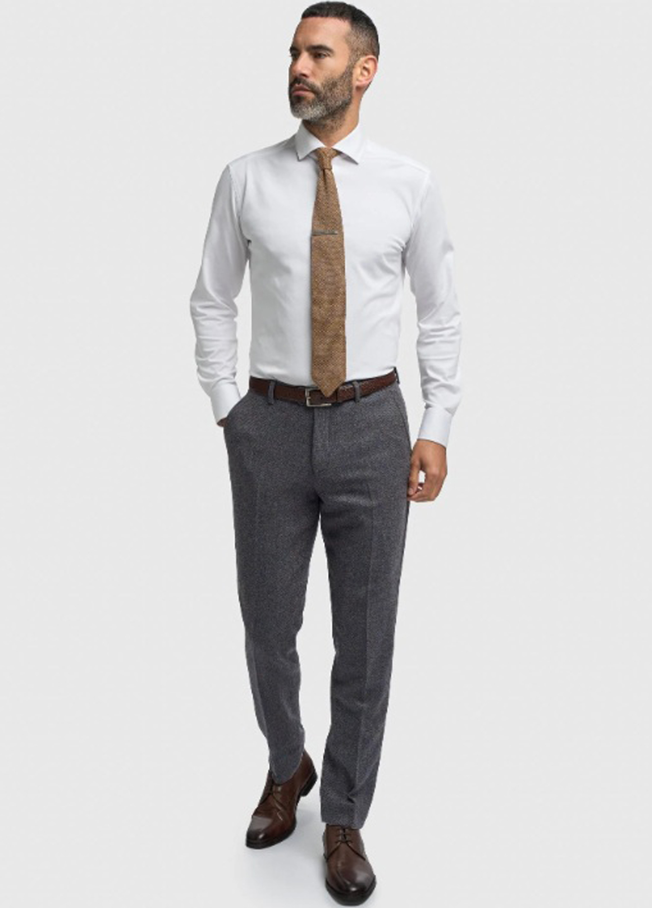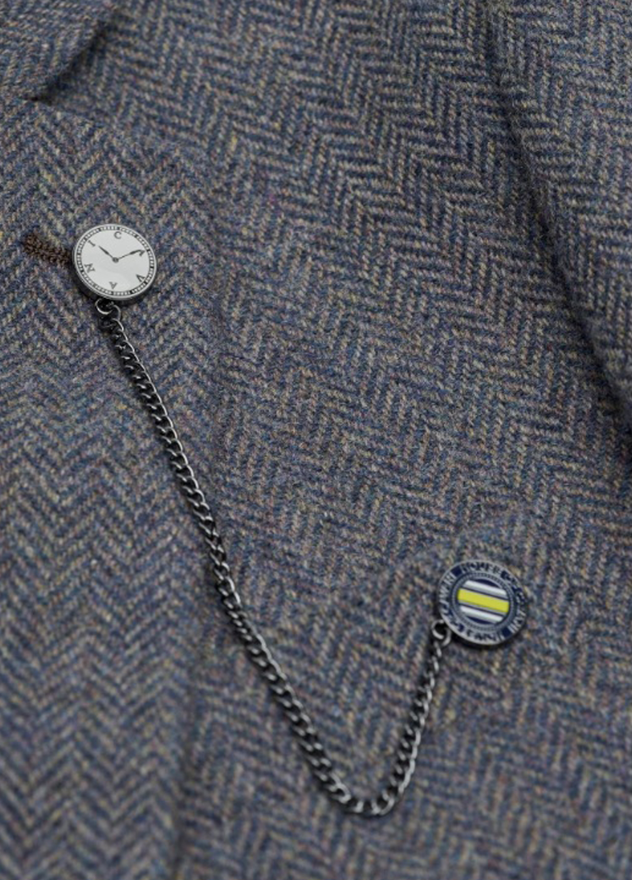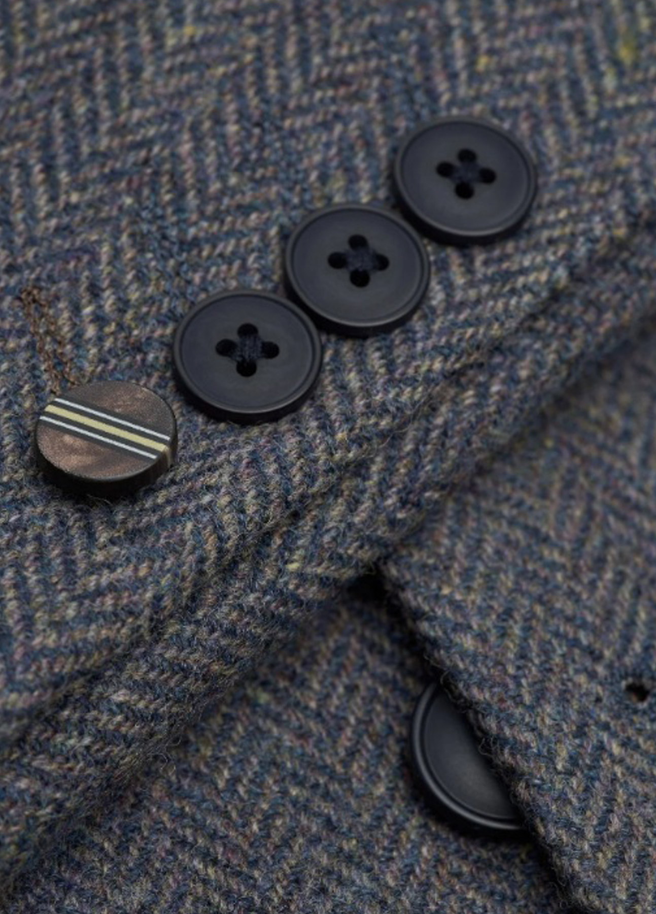 Capture a unique look with this elegantly crafted herringbone grey with heavy undertones of navy tweed 3 piece slim fit suit
