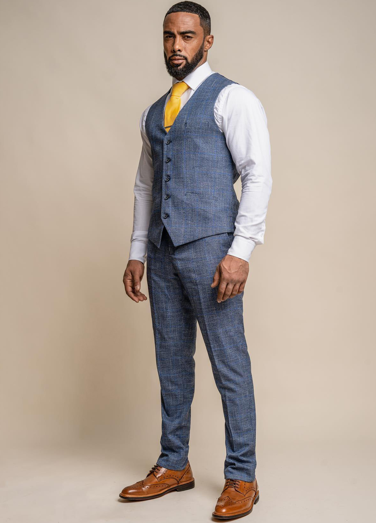 Cavani blue check waistcoat