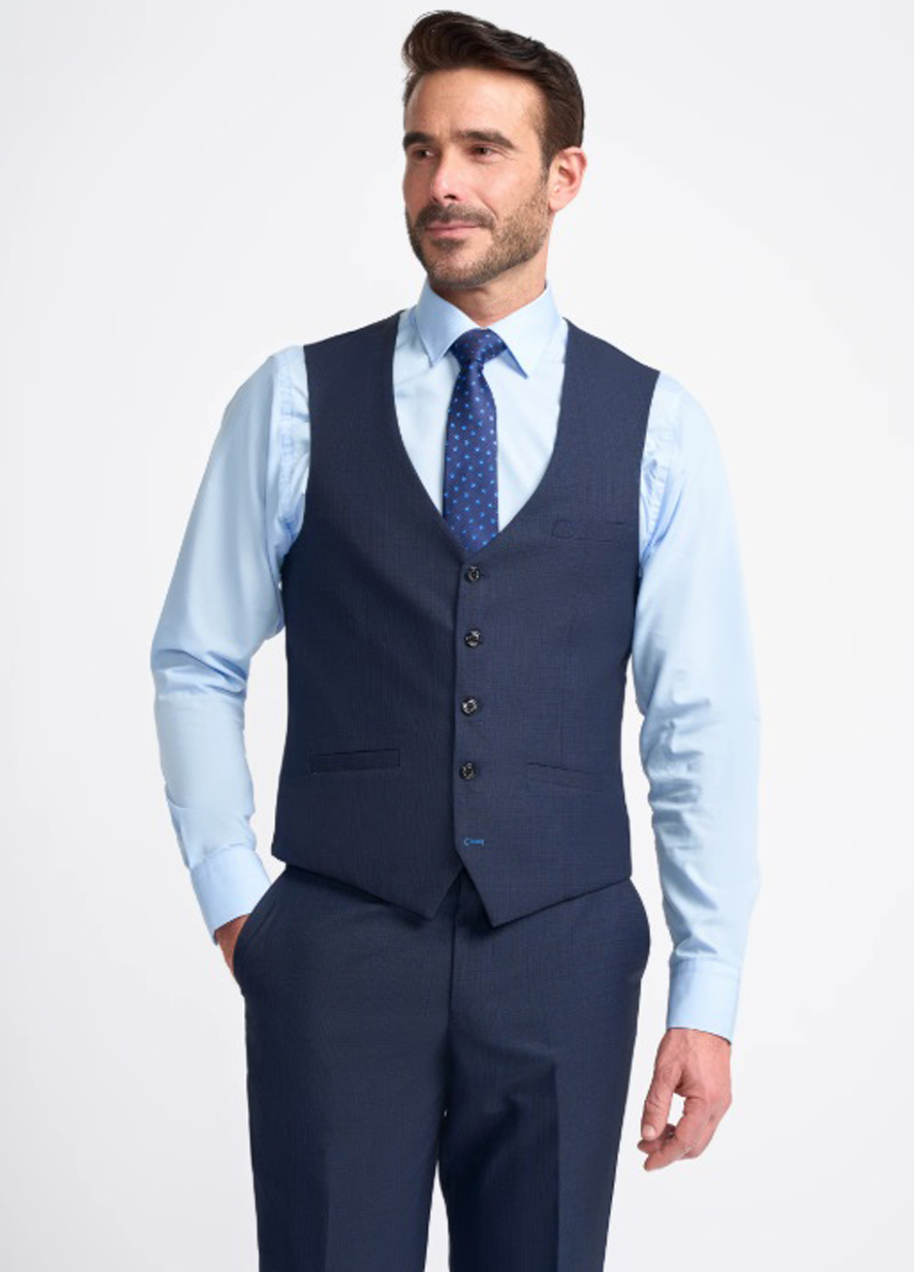 Breathe new life into your suit collection with this chic and stylish lightweight fabric navy blue 3 piece suit
