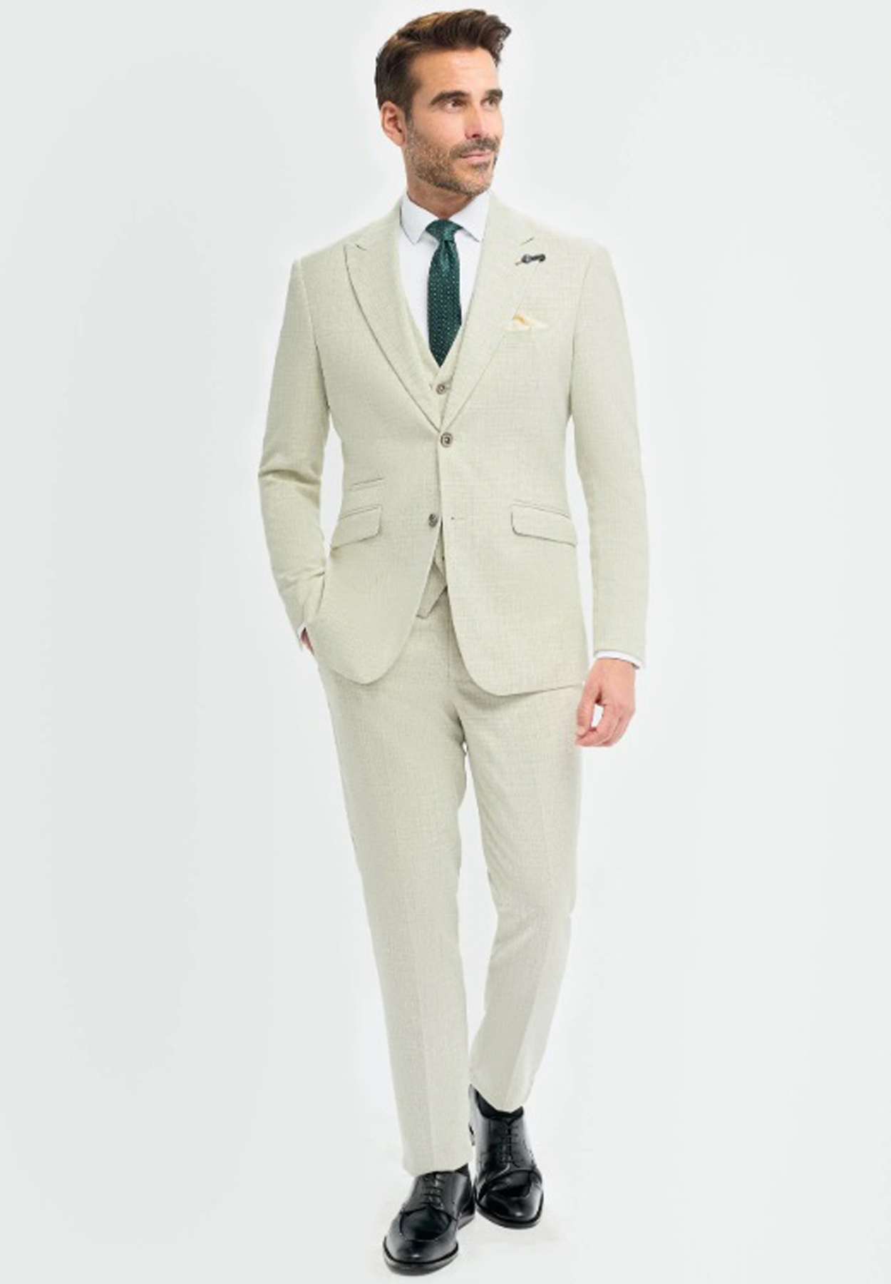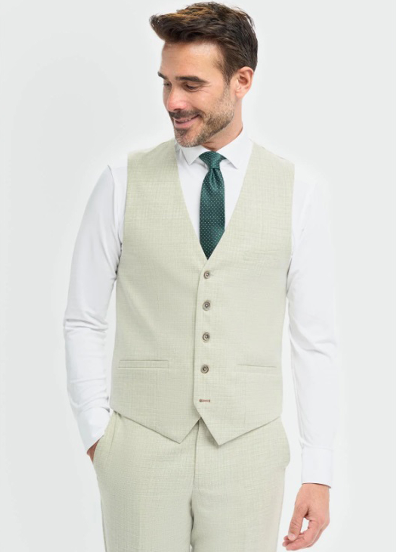 This classic summer sage green colour 3 piece suit is a ideal for summer weddings due to its lightweight fabric and pastel colour