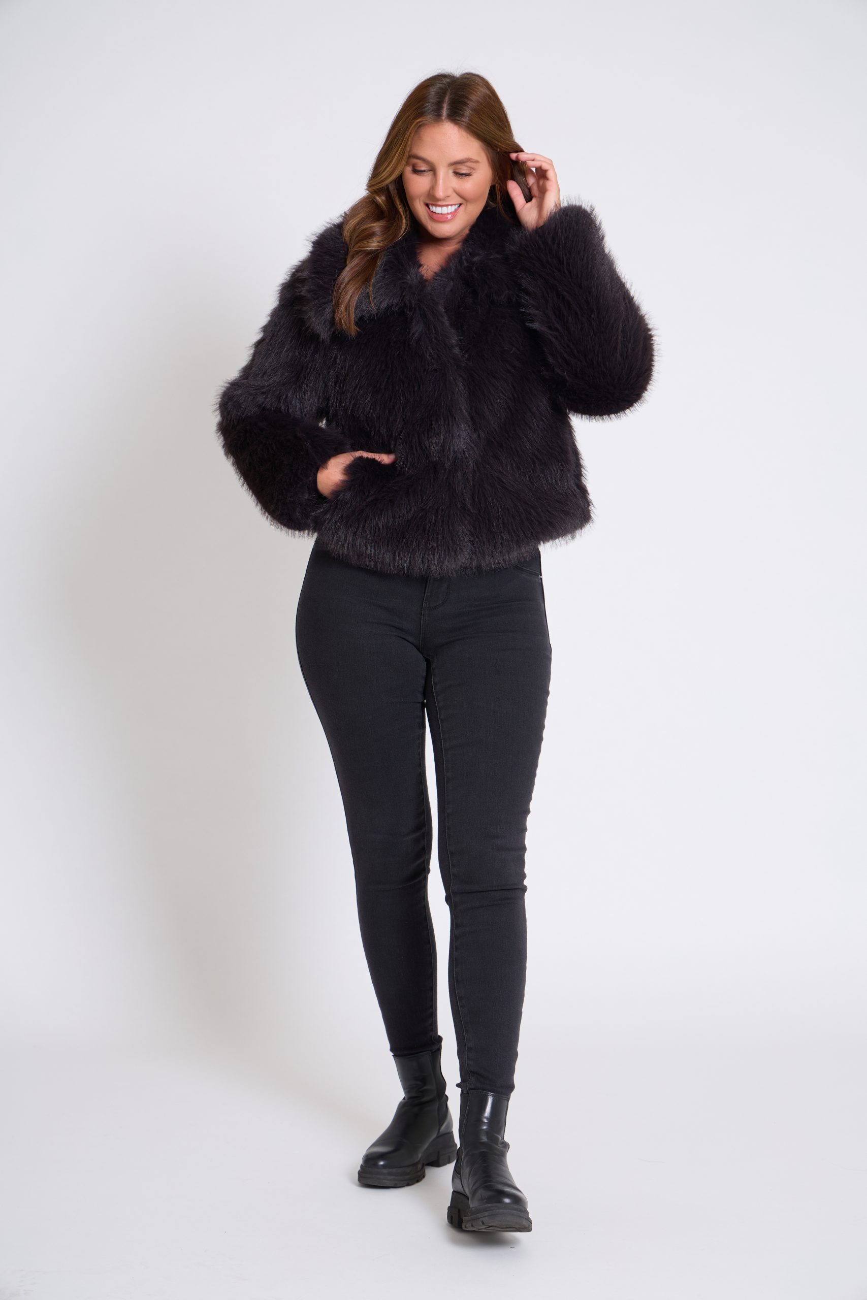 Women’s Luxurious Soft Thick Faux Fur Short Black Jacket
